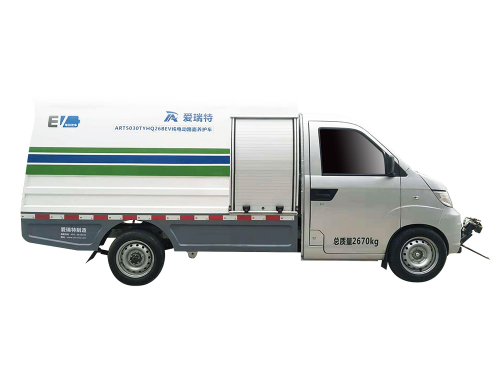 ART5030TYHQ26BEV pure electric road maintenance vehicle is mainly used for washing and maintenance of motorway, non motorway, sidewalk, back street lane, municipal garden, property community and other roads. The lower left and right side flush can be combined with the sweeper, and the front high-pressure flushing and multi angle flushing device can be used to clean the dirt and urban psoriasis at the road surface, road teeth and traffic signs. It is also suitable for garden medicine, and the rear floor washing cart, washing site and high-pressure water gun can be used to wash the road sections where the maintenance vehicles are inconvenient to stop.