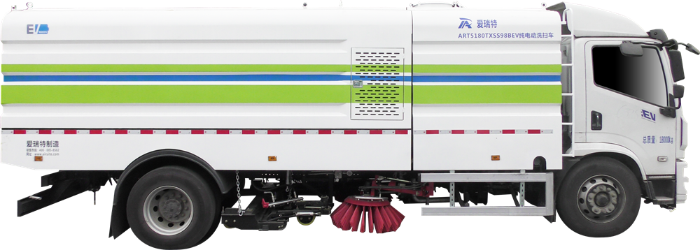 ART5180TXSS98BEV The pure electric washing and sweeping vehicle is mainly used for the general sweeping operation of the main road surface. It integrates the functions of cleaning and high-pressure washing. It can quickly clean the fallen leaves, stones, sand dust, white garbage and dump the garbage.