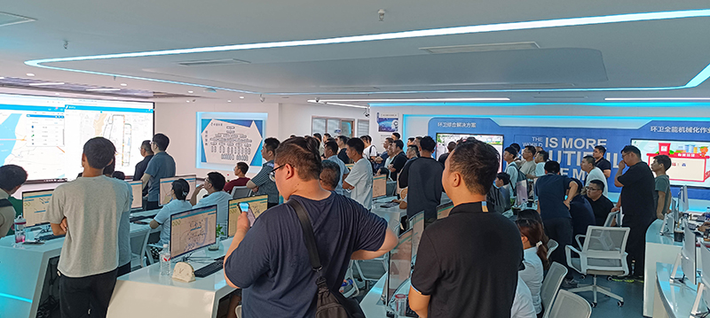 在工作人員的細致介紹下,大家深入了解了項目部自成立以來所取得的一系列豐碩成果,還知曉了環(huán)衛(wèi)車物聯(lián)網(wǎng)平臺的相關(guān)情況,并現(xiàn)場觀看了環(huán)衛(wèi)車如何借助物聯(lián)網(wǎng)控制實現(xiàn)高效作業(yè),感受科技為環(huán)衛(wèi)工作帶來的便捷與高效。