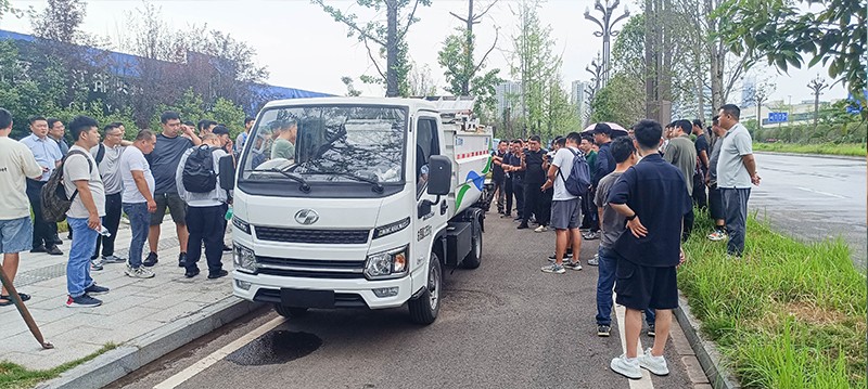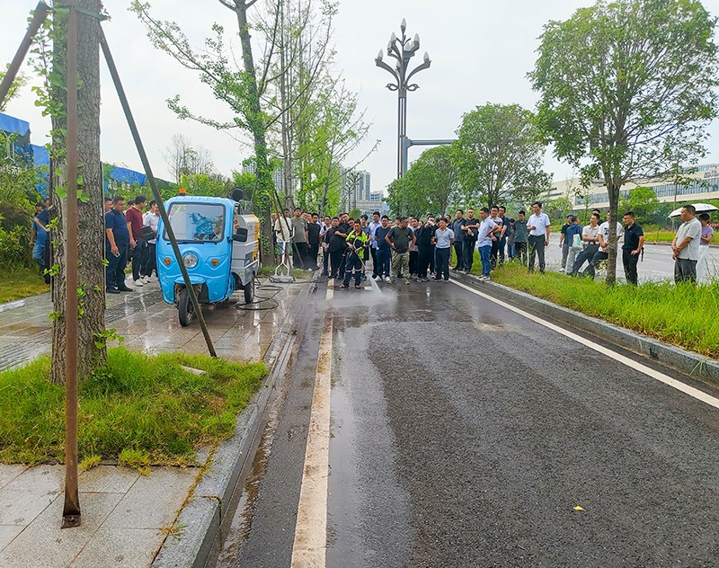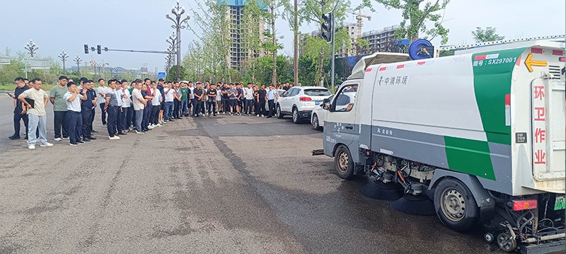 操作人員現(xiàn)場演示車輛組合作業(yè)以及清掃效果,精彩的演示讓現(xiàn)場人員都受益匪淺。通過這次現(xiàn)場觀摩,全體人員對公司產(chǎn)品在實際環(huán)衛(wèi)作業(yè)中的卓越性能與高效表現(xiàn)有了更為直觀且深刻的認識,也更加堅定了大家推廣公司產(chǎn)品、為公司發(fā)展貢獻力量的決心。