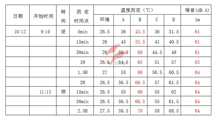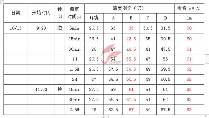 測(cè)試過(guò)程:減速機(jī)類(lèi)型:斜齒(加脂量:25g)